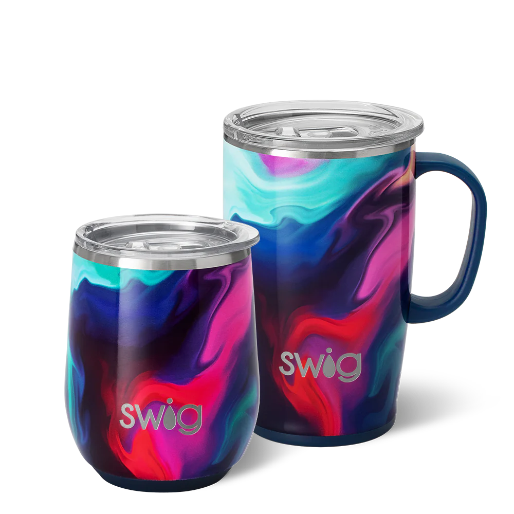A set of Swigs for day and night! ☕❤️ Get swept away in the Aura of deep teals, purples, and pink swirls.