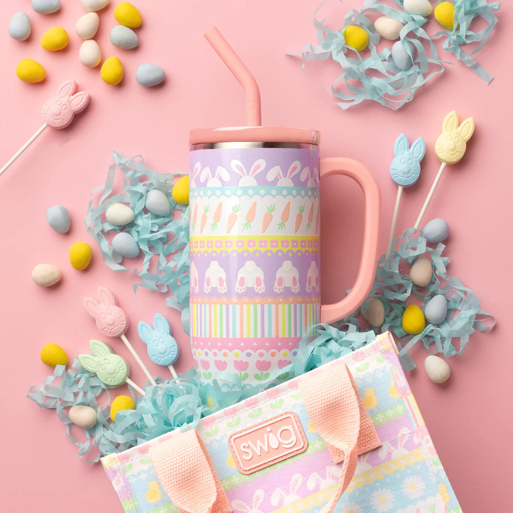 Mega sips, mega chill! 🧊 Hop on the Bunny Trail with this fun, Easter Bunny-inspired design.