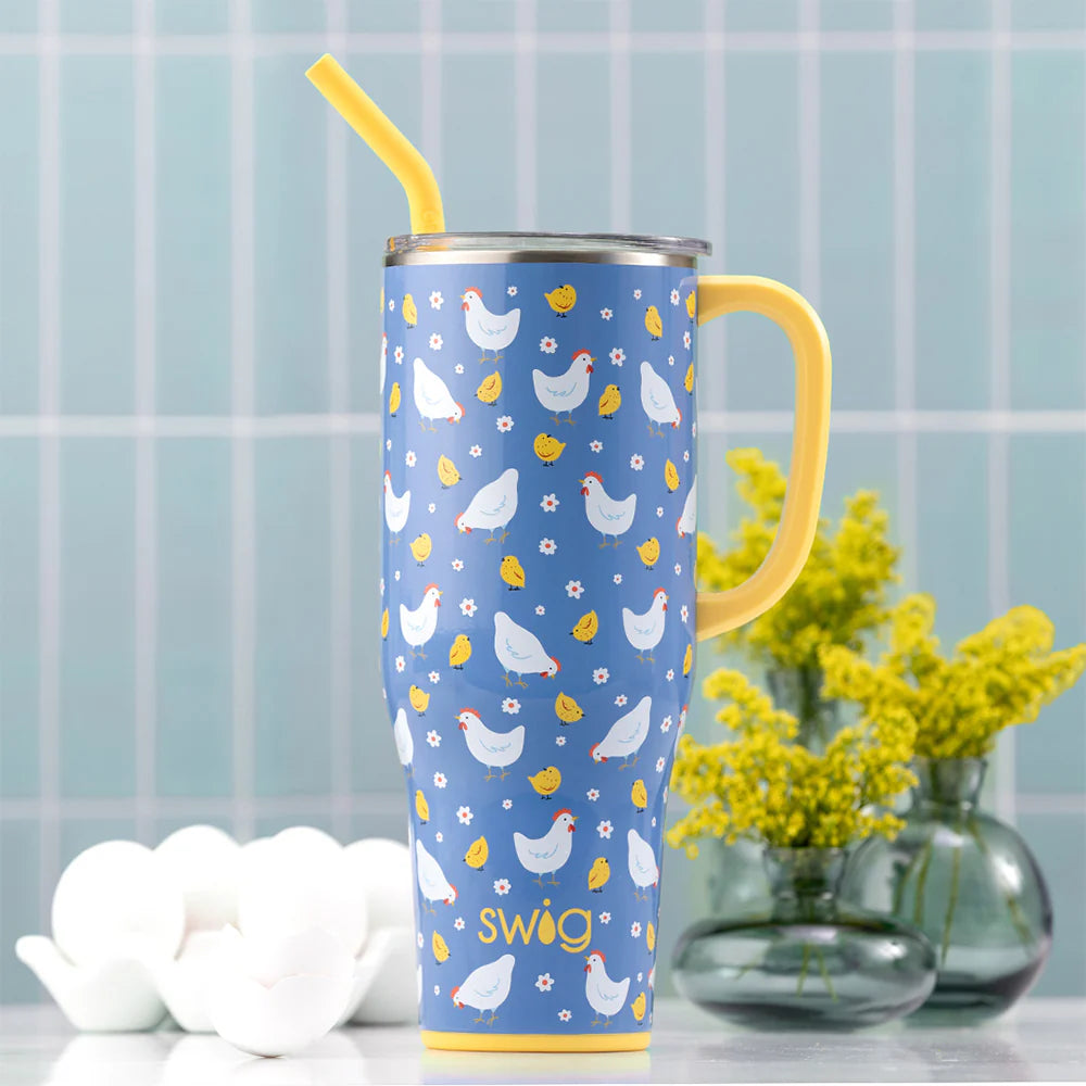 Hydrating has never been easier with our 40oz Insulated Mega Mug! A cup holder-friendly frame, a comfort-grip handle, and a plastic straw with a silicone flexi-tip all come together to create your new favorite Swig.