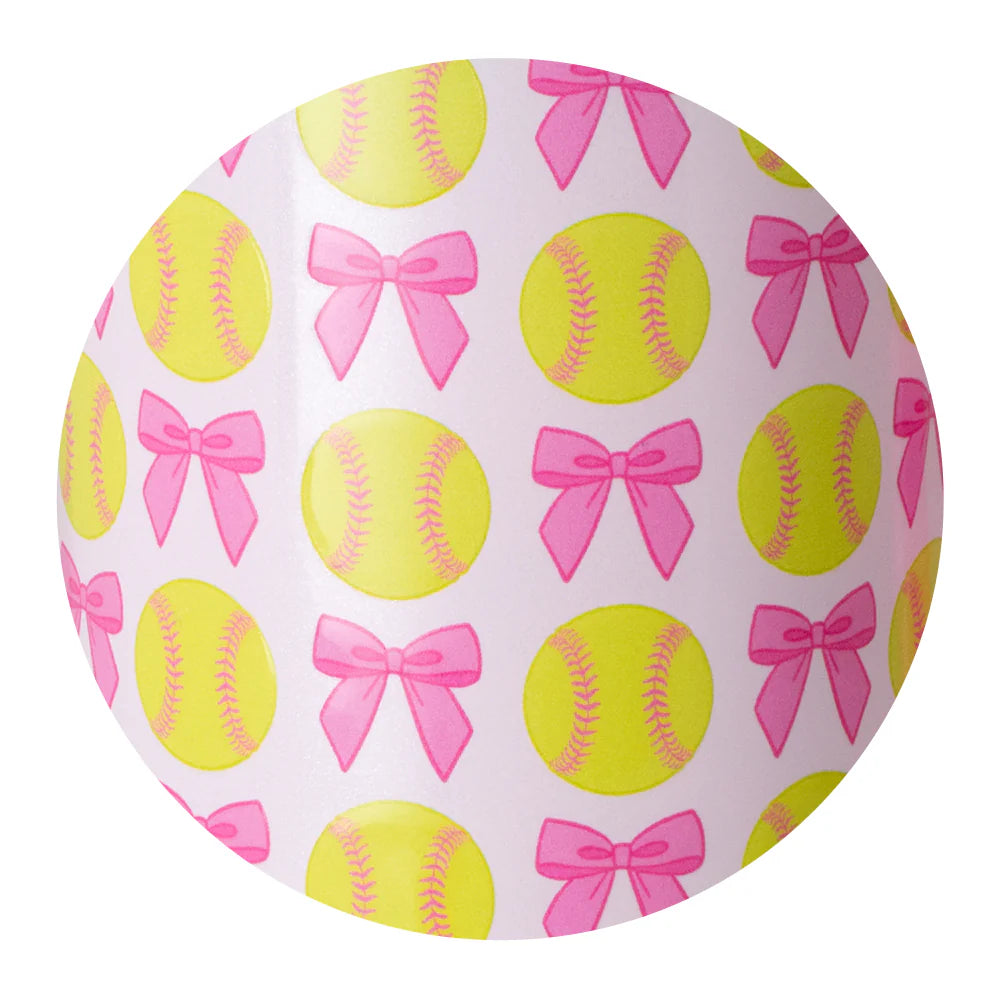 Mega sips, mega chill! π§ Hit like a girl and show your spirit with fun pink bows and bright yellow softballs! π₯