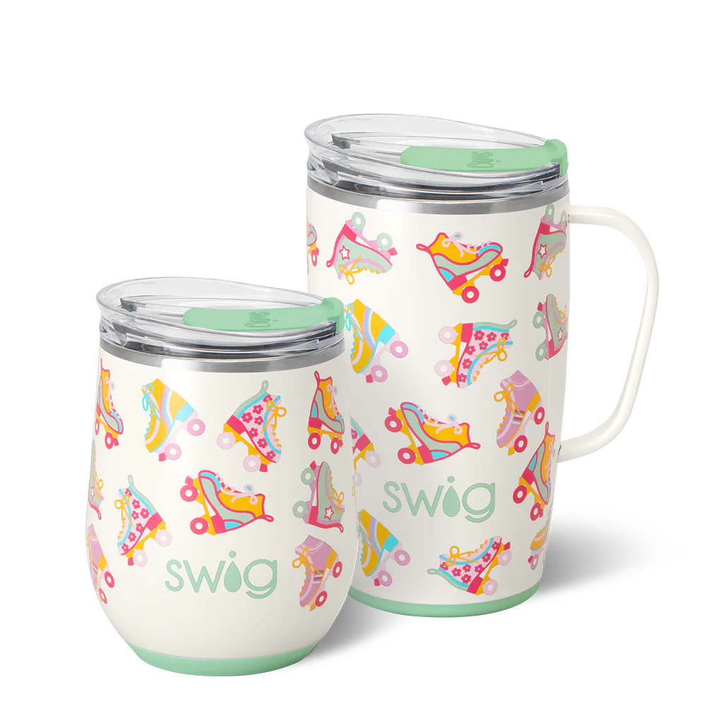 A set of Swigs for day and night! ☕❤️ Roll into fun with this colorful retro roller skate design.