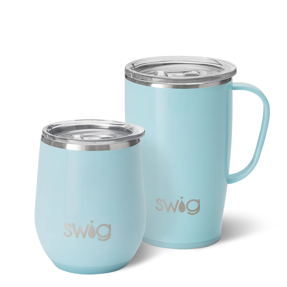 Start and finish your day with two of our best-selling Swigs. The Travel Mug will keep coffee hot through your commute, and then some! And the Stemless Wine Cup will keep your rosé perfectly chilled all evening long.