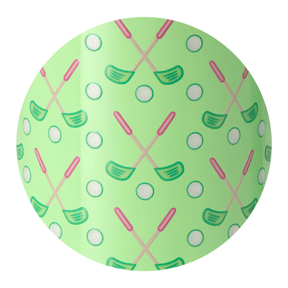 Mega sips, mega chill! 🧊 Tee it up in this fun, minty green and pink scene of golf clubs and golf balls.